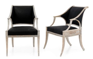 Klädseln gör mycket för att en stol ska kännas snygg och cool. Gamla möbler kan lätt se tråkiga ut men det gäller inte för de här. De här paren fåtöljer är inte billiga. De gröna har exempelvis ett utrop på 100-120000 kr! (Stockholms Auktionsverk 28-30 maj 2008).