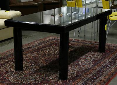 Det har svartlackade matbordet kan med iläggsskivor bli upp till 3 meter långt. Det känns något tyngre än Superellipsen. Bordet känns ändå schysst på något sätt. Det står där det står liksom. Det har ett utrop på 2000 kr. (Stockholms Auktionsverk 26-27 maj).