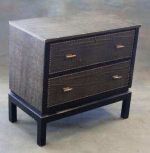 Nedan är två byråer i konstläder respektive björk med intarsia. De är drygt 75 cm höga och har ett utrop på 2500 respektive 2000 kr. /Slutbud: osålt resp 3500 kr/