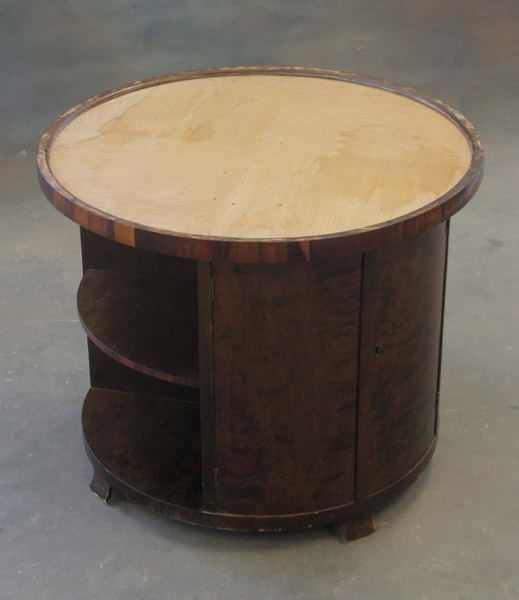 En funkisbord som är jättesnyggt i formen. Tyvärr saknar den topp men det gör inget för det är bara att fixa en glasskiva och lägga ett tyg eller snygg tapet under. Klart! Bordet är 59 cm högt och diametern är 72 cm. Utrop 800 kr (Ingelmarks 31 maj). /Slutbud samma som utrop/
