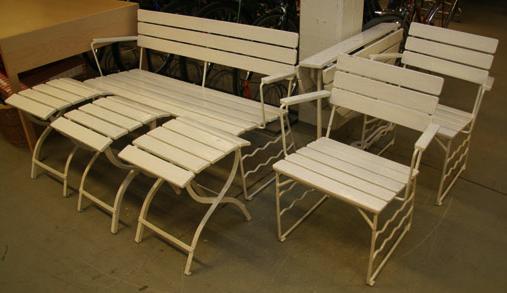 Mer trädgårdsmöbler. Här är 1 bord, 2 karmstolar, 1 soffa och 3 pallar på auktionen på Auktionsbyrån Effecta i Västerås 1 juni. Utropet är 800 kr vilket känns bra. Designen är kanske inte den mest spännande men de verkar ju vara i ganska gott skick. /Slutbud 1100 kr./