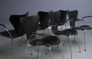 Här är 6 st sjuanstolar av Arne jacobsen, svarta med armstöd. Det är ju väldigt schysst att ha runt matbordet. Dessa är 1960-tal. Utropet är 9000 kr, budet är för närvarande uppe i 3900 kr på Lauritz.com. Auktionen avslutas 4 juni. En nytillverkad sjuanstol utan armstöd går loss på cirka 4000 kr. Det kan vara bra att ha i åtanke! /Slutbud 11000 kr./