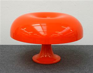 Lampor kan man inte få för många av! Den här bordslampan i orange plast kommer från Artemide. Diametern är 53 cm och höjden 34 cm. Utrop på 1000 kr och högsta bud är nu 700 kr. (Lauritz.com 9/6)
