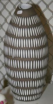 Golvvasen ”Negro” för Upsala-Ekeby är 47 cm hög och designad av Ingrid Atterberg. Utropet är 1000 kr /Slutbud 2400 kr/ (Effecta 8 juni).