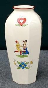Här är något som svärmor blir glad över att få i present på midsommarafton. Det är en porslinsvas från Rörstrand (32 cm). Motivet heter ”Daldansen”. Kan det bli mera svenskt? Jag själv är mycket förtjust i säsongsvaror, dvs julsaker, påsksaker mm. Men varför inte en midsommarsak?! Utrop 1000 kr och högsta bud är just nu 425 kr. (Lauritz.com 11 juni).