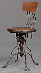 Den här snurrstolen designades av Isaac Merrit Singer (han med symaskinerna) 1851 i Boston, USA. Den var tänkt att användas just till Singer symaskin. Lite tuff är den. Utropet är 1500-2000 (Lilla Bukowskis 16-17 juni).