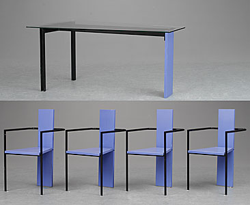 ljus eller telefoner utformade som bananer? Men det kommer snart tillbaka, sanna min ord. På Lilla Bukowskis ropas några möbler ut som var heta på 80-talet och början av 90-talet. Först är det matbord och fyra stolar av Jonas Bohlin. Stolarna är i trä och heter Concrete. Den stolen fast i betong skulle jag inte ha något emot att äga! Möblemanget ropas ut för 6000-8000 kr. Det tillverkas
