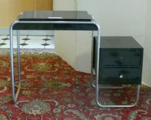 Här ett telefonbord i funkis från typ 1930-talet. Telefonbord känns ju något omoderna så jag tänkte man kunde ha det som ett skrivbord istället. Jag är inte hundra på att det funkar men jag tror det. Längden är 100 cm och höjden 70 cm (skrivbordshöjd). I djupled är bordet 42 cm. En laptop borde få plats. Och så har man ju några lådor för förvaring. Dessutom skulle en mindre skrivare få plats på hurtsen. Inredning för compact living! Bordet ropas ut för 600 kr (Auktionskompaniet Göteborg 16 juni).