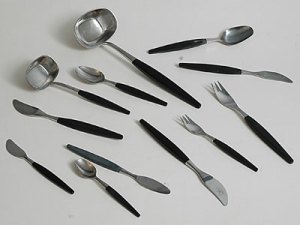 Här säljs hela 84 delar av Folke Arnströms bestick ”Focus de luxe” från 1955 för utropet 2000 kr. De är visserligen lite slitna men de är ju så jättesnygga!!!!! Matbesticken (kniv, gaffel och sked) nytillverkas igen och kostar ungefär för 12 delar, 1000 kr. (Göteborgs Auktionsverk 24 juni)