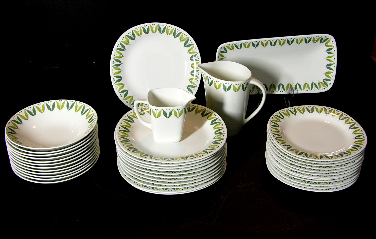 Karneval heter en servis från Rörstrand. Här får man ett dussin tallrikar, ett dussin djupa tallrikar samt ett dussin assietter. Dessutom får man två kannor och ett uppläggningsfat. Utrop 2000 kr och högsta bud är just nu 1750 kr. Men skynda för auktionen är snart på Lauritz.com!!!!