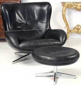 Fåtölj med fotpall enligt uppgift i dansk design ropas ut för 4000 kr och en soffa med teakunderrede ropas ut för 2000 kr. Sådana här möbler är häftiga men man bör syna dem noga skinnet kan vara sprött och trasigt och många gånger så har stoppningen börjat ”äta upp sig själv”. (Stockholms Auktionsverk 12 aug resp Auktionskompaniet Malmö 11 aug).