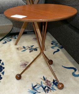 Det här avlastningsbordet från 1960-talet är bara så skönt. Det kan bli otroligt fint i en stram retroinredning. Bordsskivan är i teak och benen i koppar. Ropas ut på Hallands Auktionsverk 28 augusti.