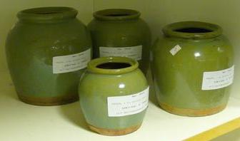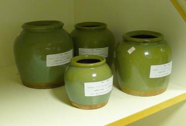 De här krukorna är från Kina. Årtal är ej angivet. Oavsett faktisk ålder så tycker jag att de är rätt snygga att ställa i grupp och de ser lite gamla ut. Färgen är också fin. Utropet är 1000 kr (Auktionskompaniet, Göteborg 7 sep).