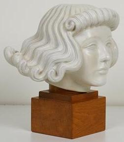 Det här flickhuvudet är gjort i glaserat stengods av Gunnar Nylund för Rörstrand. Det förställer troligtvis hans dotter. Gunnar Nylund, som föddes 1904, var anställd vid Rörstrands porslinsfabrik 1931-1958. Jag tycker att huvudet har en häftig form, nästan lite art deco. Utropet är 5000 kr och högsta bud är närmare 8000 kr just nu så det är fler än jag om gillar den. Förresten är huvudet 29 cm högt inkl originalsockeln (Lauritz.com 10 sep).