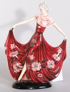 Jag tycker ibland att det är hopplöst svårt att hitta några kul grejer i auktionskatalogerna. Den här porslinsfigurinen från Wien är väl ändå ganska så ok. Den är 35 cm hög. Den skulle faktiskt passa i mitt nya rum i art deco stil! Röd och allt. Men utropet är på 3000 kr vilket är i mastigaste laget för mig! (Auktionskompaniet, Stockholm 28 sep).