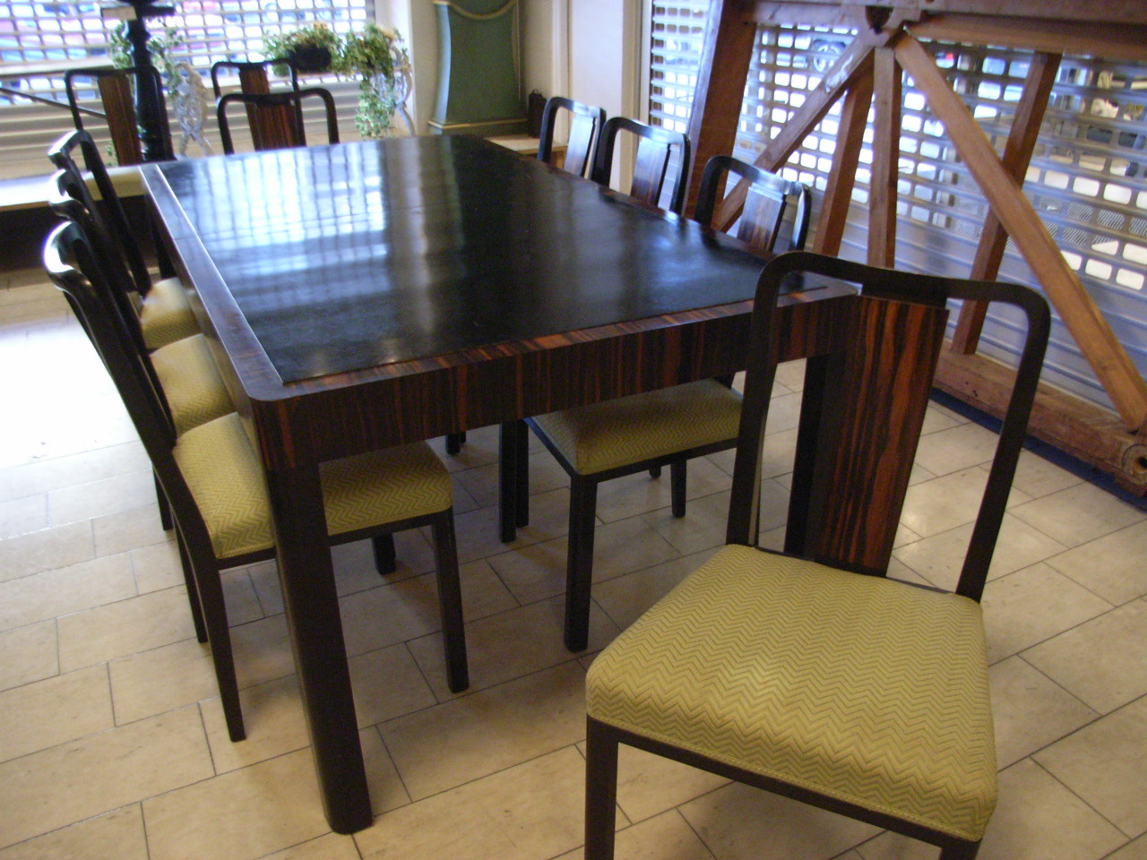 Vilket fynd! Ett mastalsbord i art deco med 10 tillhörande stolar. Detta möblemang hade jag absolut köpt om jag hade haft plats. Det ser ut att vara i zebrano-trä som jag älskar. Verkligen synd att jag inte har en större lägenhet. Utropet är låga 5000 kr (Auktionshuset Kolonn 26 okt).
