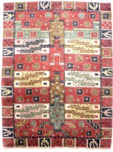Jag brukar inte gilla alla Märtas mattor men den här är jättesnygg. Det är en flossamatta, dvs vävnad med stående kort lugg. Märta designade mattan ”Tornet” 1932 men denna är gjord vid ett senare tillfälle. Måtten är 240×180 cm. Mönstret är fint och färgerna behagliga. Mattan ropas ut på Hallands Auktionsverk 30 oktober.
