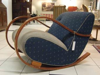 En annan ovanlig stol är denna gungstol i funkis. En omklädsel och den kan bli hur skön som helst. Utropet är 2500 kr (Auktionskompaniet, Malmö 17 nov).