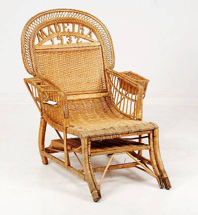 ….är precis vad man behöver nu. På med sollampan och reaggemusiken och sippa på en iskall paraplydrink och dröm dig bort. Den här korgstolen med utfällbart fotstöd och flaskställ är perfekt. Det står ”Madeira 1932” på den. Den är riktigt kult och ropas ut för 2000 kr (Stockholms Auktionsverk 17-18 nov).