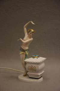 En cool lampa (tror jag) i art deco. Jag förstår inte riktigt hur lampan skall monteras. Skall sladden dras upp genom hålet på lyktan och ska man sätta lamphållaren där? Denna skulle jag vilja titta lite närmare på för att se om man kan göra något kul av den. Den är 30 cm hög och utropet är 700 kr (Vätterbygdens Auktionskammare 30 nov).