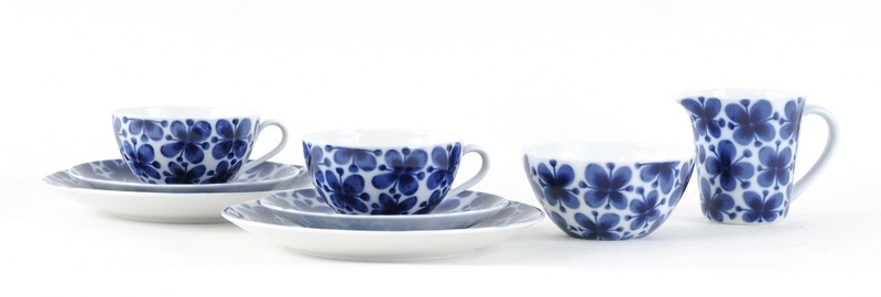 Kaffeservisen med 13 kaffekoppar med fat och assietter samt sockerskål och gräddkanna ropas ut för 3000-4000 kr. Smakar det så kostar det.