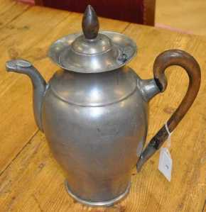 En tennkanna i empire passar bra till varm choklad eller gluhwein. Ni vet väl att varm choklad med vispgrädde spetsad med lite mörk rom och punch är mycket gott! Kannan ropas ut på Halmstads Auktionskammare 10 januari. den är 29 cm hög.