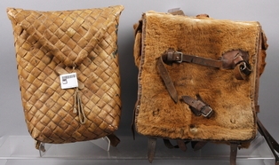 Två ryggsäckar från 1800-talet ser trevliga ut på väggen. Helst ska man hitta ett par gamla skidor att sätta upp också. Ryggsäckarna ropas ut på Auktionsverket med avslut den 13 januari. Högsta bud just nu är 400 kr.