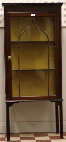 Vitrinskåpet är i mahogny från början av 1900-talet och ropas ut för 700 kr. Vätterbygden har inte satt utropspriser på allt. Förnsterborden exempelvis saknade utropspris.