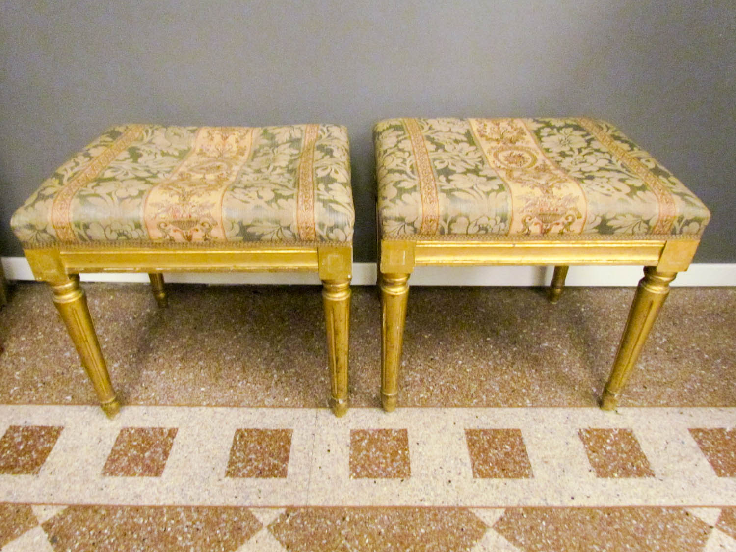 4) Två taburetter i gustaviansk stil, 650 kr.