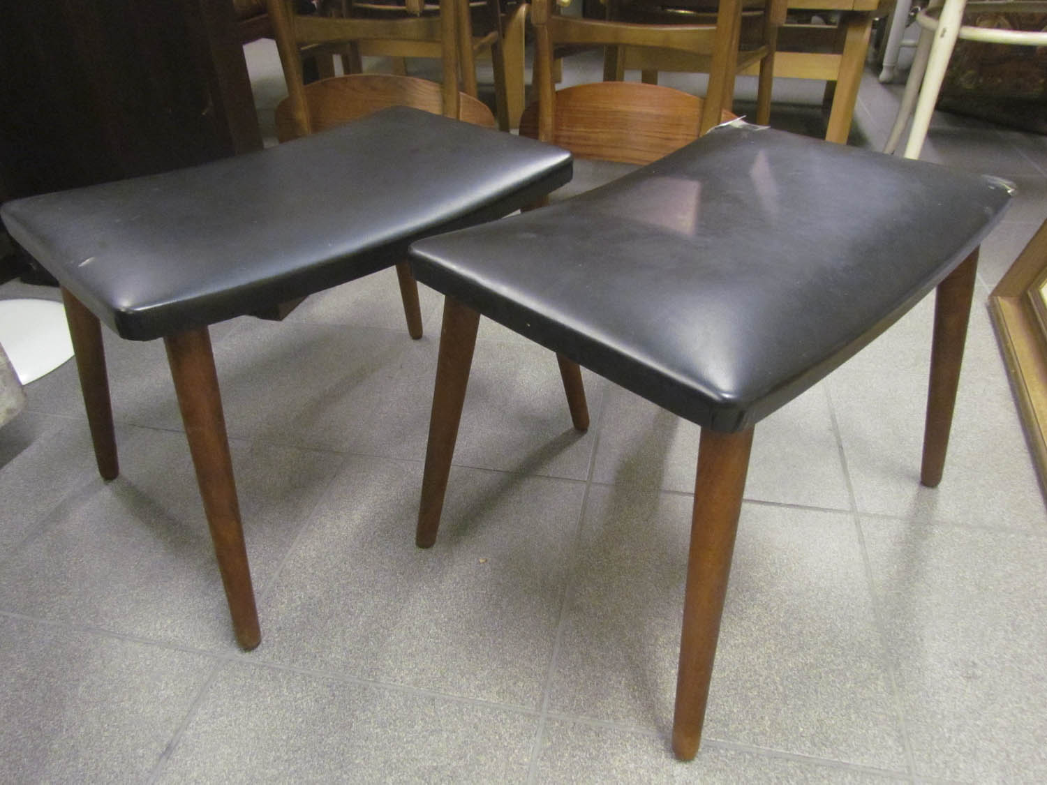 1) Två taburetter i mahogny, 20-tal, 950 kr.