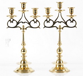 Mässing passar bra till allt det röda på julen. Här är två kanndelabrar från Skultuna med höjden 37 cm. Bud just nu 650 kr (11 nov).