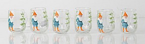 Sex bemålade glöggmuggar i glas från förra sekelsskiftet, 6 cm höga. Bud just nu 100 kr (13 nov).