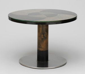 Det andra bordet ropas också ut för 8-10 tkr men har en helt annan karaktär. Jag älskar virvelmönstret på detta bord. Det är genialiskt. Bordet är designat av Otto Schultz för Boet, Göteborg. Träslaget är björk och betsad björk på stålskodd fot. Höjden är 62 cm och diametern 85 cm.