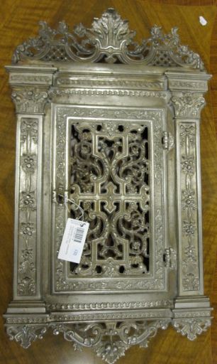 6. Nästa grej är lite udda. Ett nyckelskåp i metall från förra sekelskiftet. Det är så tufft att det passar varsomhelst. Det vore kanske något för ungarna att hänga sina nycklar i för de lyckas alltid förlägga dem någonstans. Höjden är 63 cm.