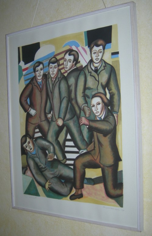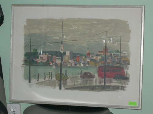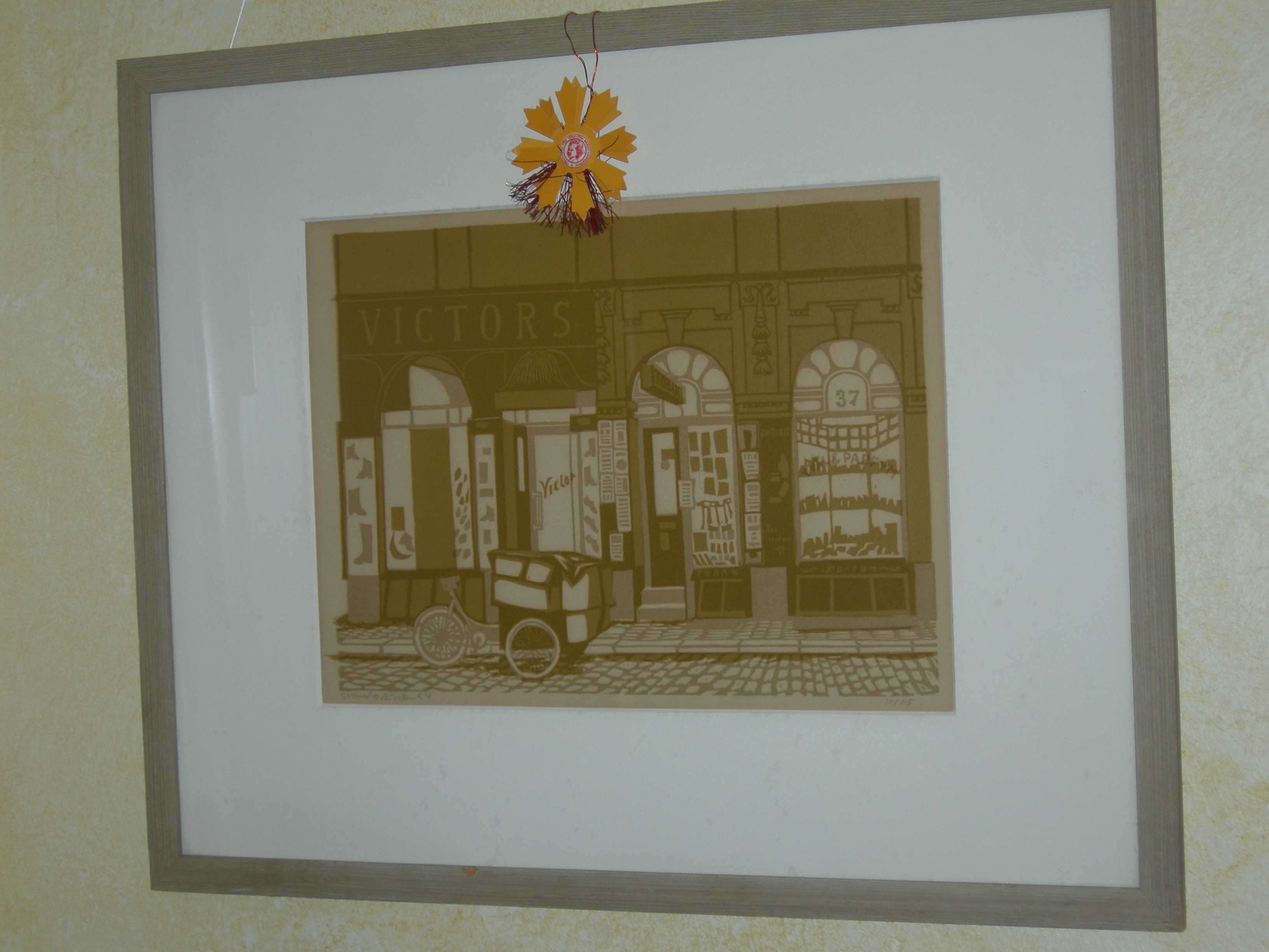 Det var Konst-loppis på jobbet igår. De sålde ett 60-tal utrangerade verk till välgörande ändamål. Kul! Vi var många där kl 10 när loppisen började. Dessa litografier köpte jag för 200 kr, 100 kr resp 25 kr. Inga märkvärdiga tavlor men ändå…. Mittentavlan har fått en juldekoration som kommer från Föreningen för värnlösa barns uppfostran.