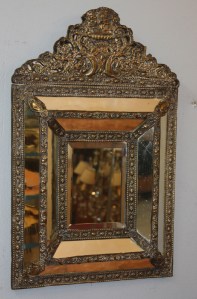 En härlig spegel ropas ut också. Den är i barockstil och höjden är 71 cm. Skånes auktionsverk har ganska knapphändig information. Man skulle ju vilja veta vad det är för metall. Och kanske bredden. Ock skicket, Med mera. Ingen har lagt bud ännu.