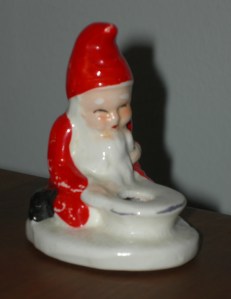 Den här tomten köpte jag i somras på en loppis i Roslagen för 2 kr. Jag tyckte den var sådär men ändå… Jag slog till. Den är 8 cm hög och ser inte mycket ut för världen. Döm då om min förvåning då den dök upp i senaste numret av Antikvärlden. Mitt på sidan står den och sägs vara från Tyskland (den saknar helt märkning). Mästerby Antik säljer den för 450 kr!!!! Verkar lite överprissatt tycker jag.