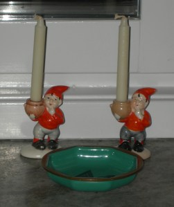 Annars har jag flera tomtar hemma. Bland annat dessa två som kommer från min mans farmor o farfar. De ser lite lagom 30-talsaktiga ut och passar bra hemma.