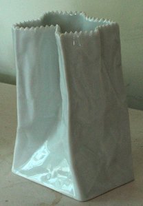 Tapio Wirkkala (1915-85) är en av Finlands mest kända formgivare. Han fick sitt genombrott i glas men han jobbade med en massa sorters material. Nedan visas ett axplock av hans produktion. Vasen som ser ut som en papperspåse gjorde han för Rosenthal. Lustigt, jag äger en sådan utan att ha en aning om vad det var frågan om!