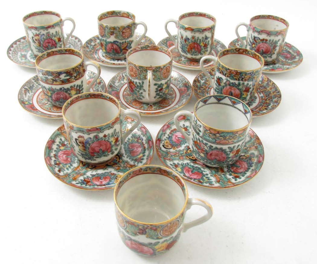 Nedan 8 mockakoppar från Rosenthal och 10 kinesiska koppar. Auktionen avslutas 10 januari på Metropol. Gäller även de olikfärgade kopparna ovan.