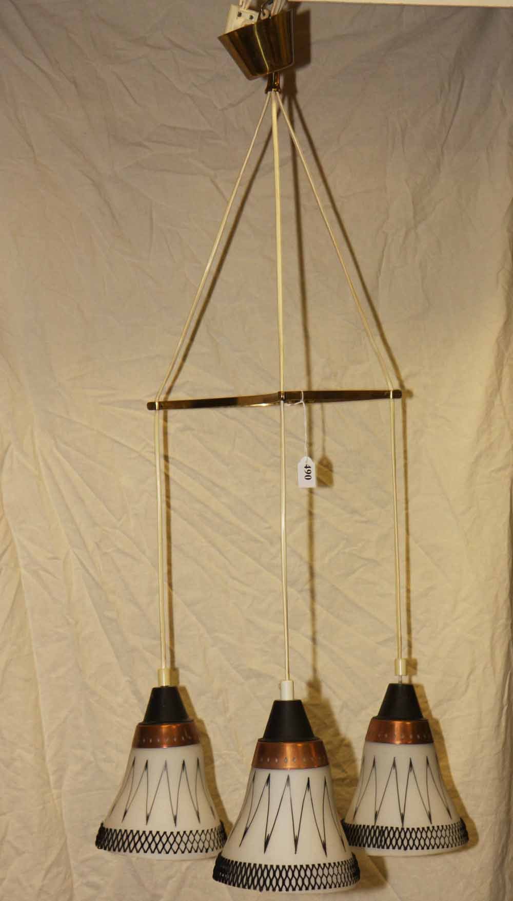 Vad sägs om lampan från 50-talet då? Det är vita glaskupor med svart dekor. Vill ha!!! Inget utropspris angivet.