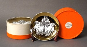 Sista bilden är ju mer underlig. Det är något som i katalogen beskrivs som 8 st kuvertfat av Fornasetti i originalkartong. Vad är kuvertfat? Men det som gör det hela speciellt är att kartongen är snyggare än innehållet!