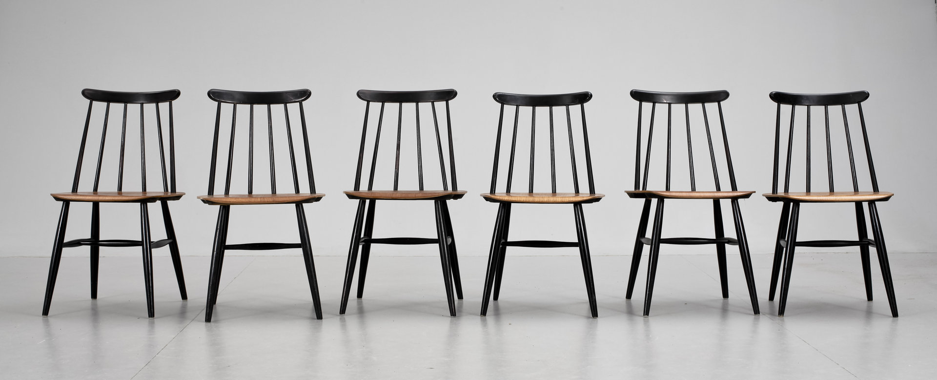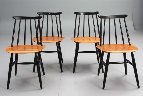 Till sist de välkända stolarna Fanett som säljs på Bukowskis Market med avslut den 22 januari. De formgavs av Ilmari Tapiovaara (1914-99) för Edsbyverken. Modellen kom 1955. De mycket snygga och jag skulle kunna köpa 6 st till köket men de passar inte riktigt in. Då skulle jag få göra om köket. Då blir det dyrt. Stolarna ropas ut för 2800 kr resp 1600 kr. Jag tror att de 4 stolarna är hårdare slitage på.
