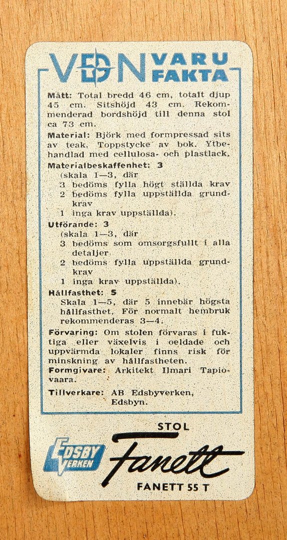 Här kommer lite rolig fakta om Fanettstolarna. Vad noga man var på den tiden!