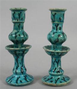 På första bilden är det ett par ljusstakar i fajans från 1800-talet eller äldre. De är tydligen utan skador! Höjd 16 cm. Jag tycker färgen är jättefin!