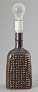 På nästa bild en bordslampa i rödbrun glasyr signerad med studiohanden av Stig Lindberg. Den är kanske inte så märkvärdig men jag gillar formen och det prickiga reliefmönstret! Höjden inkl lampsockel är 31 cm. Utropet är 1500 kr och auktionen avslutas 25 januari.