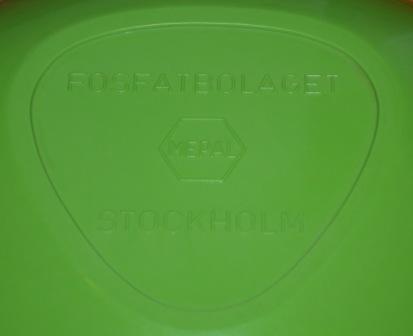 Så här ser den ut undertill. Det står Fosfatbolaget, Mepal, Stockholm. Kan någon hjälpa mig reda ut detta? Är den tillverkad av Fosfatbolaget eller Mepal?