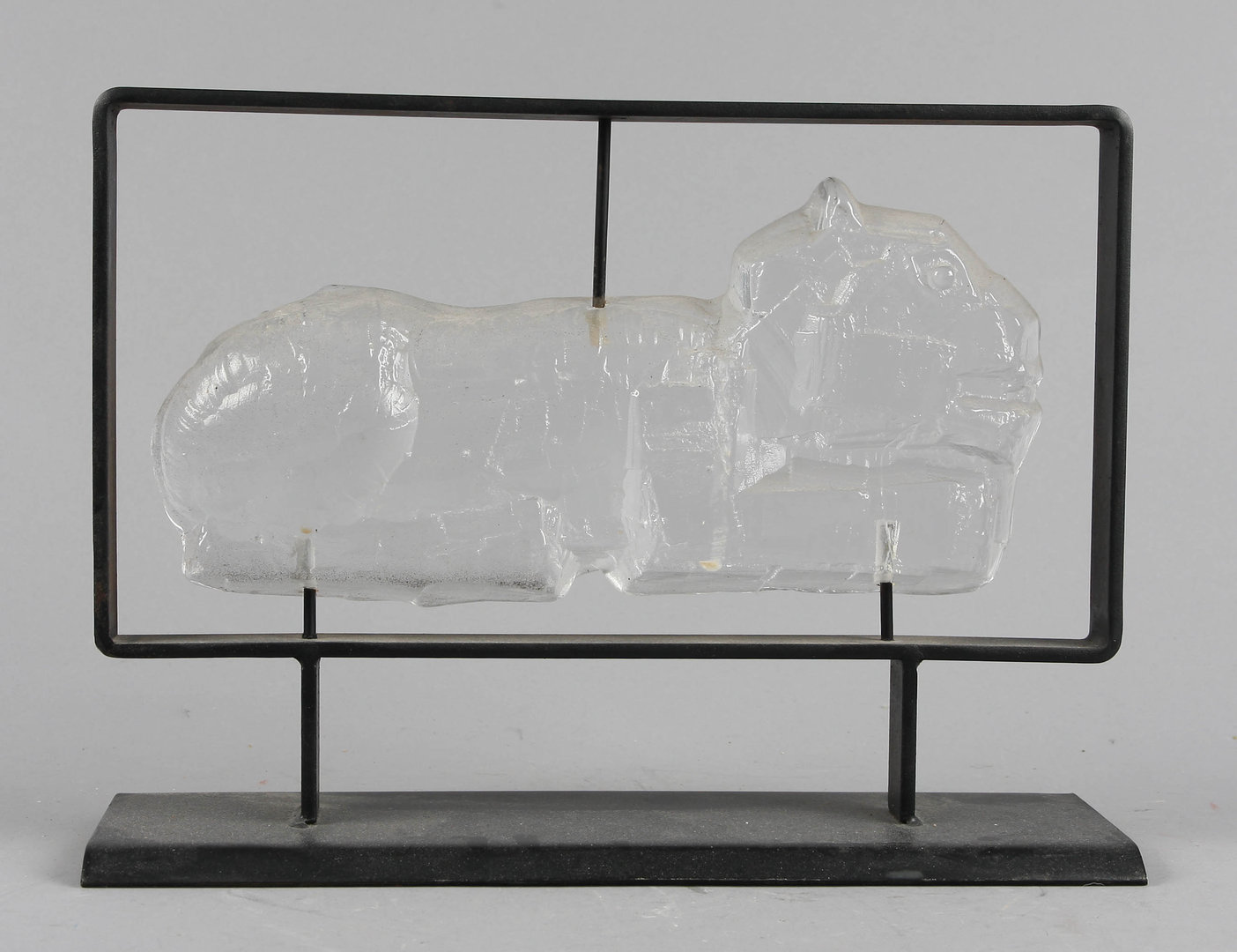 Till sist en skulptur av en puma i klarglas, monterad i svärtad järnställning. Höjden är 25 cm. Den ropas ut på Bukowskis Market med avslut 8 februari, Utropet är 1000 kr men den lär bli dyrare.