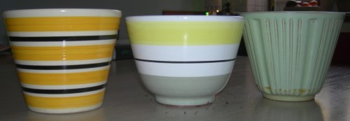 De tre ovan hittade jag i en soptunna utanför en loppis. Inget fel på dem så när som avlagringen längst ner på den gröna.