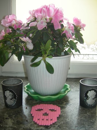 Observera fatet till den helvita krukan. Det är jättesnyggt i vårgrönt och jag köpte ett gäng på en loppis.
